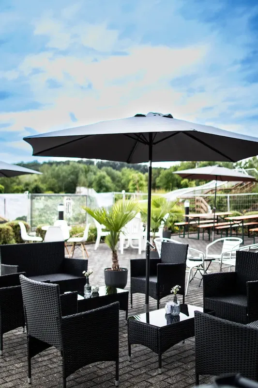 Entspanntes Ambiente im ehemaligen Inselbad Bad Abbach – mitten im Grünen.